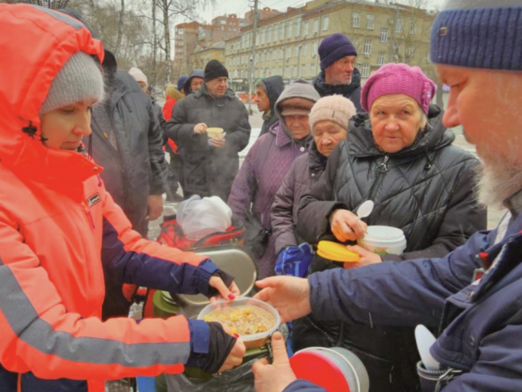 Бездомным людям раздаётся горячее питание (суп или мясо с гарниром, горячий чай/кофе/компот, печенье или конфеты), тёплая одежда (куртки, шапки, шарфы, варежки, носки, обувь по сезону)