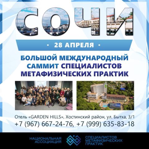 28 апреля в Сочи будет проведен большой международный саммит специалистов метафизических практик в отеле Garden Hills, Хостинский район, ул. Бытха, 3/1