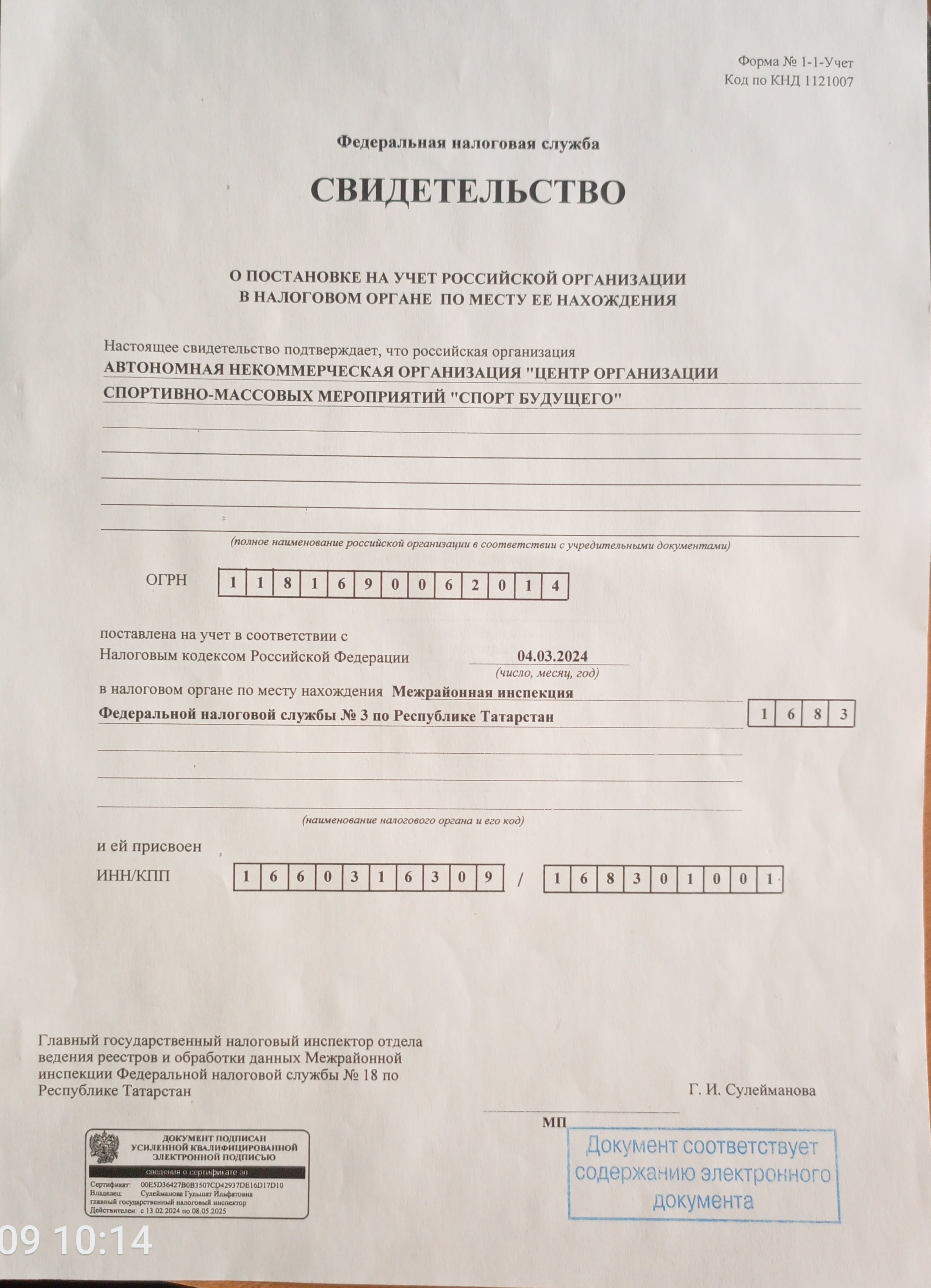 Наименование: Автономная некоммерческая организация «Центр организации спортивно-массовых мероприятий «СПОРТ БУДУЩЕГО» (АНО «СПОРТ БУДУЩЕГО») Юридический адрес: 420032 г. Казань, ул. Поперечно-Базарная, д. 57, помещ. 1000