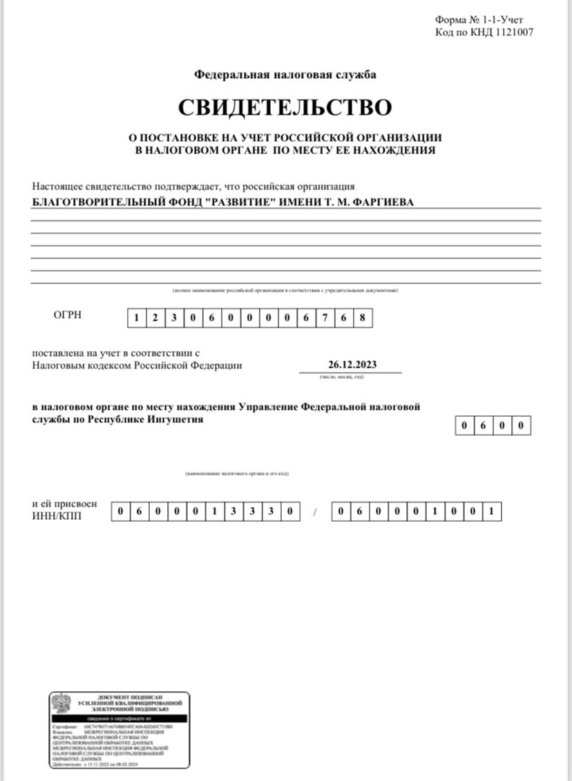 Благотворительный фонд "Развитие" имени Фаргиева Т.М. на данным момент занимается поддержкой участников специальной военной операции (СВО) и их семей.