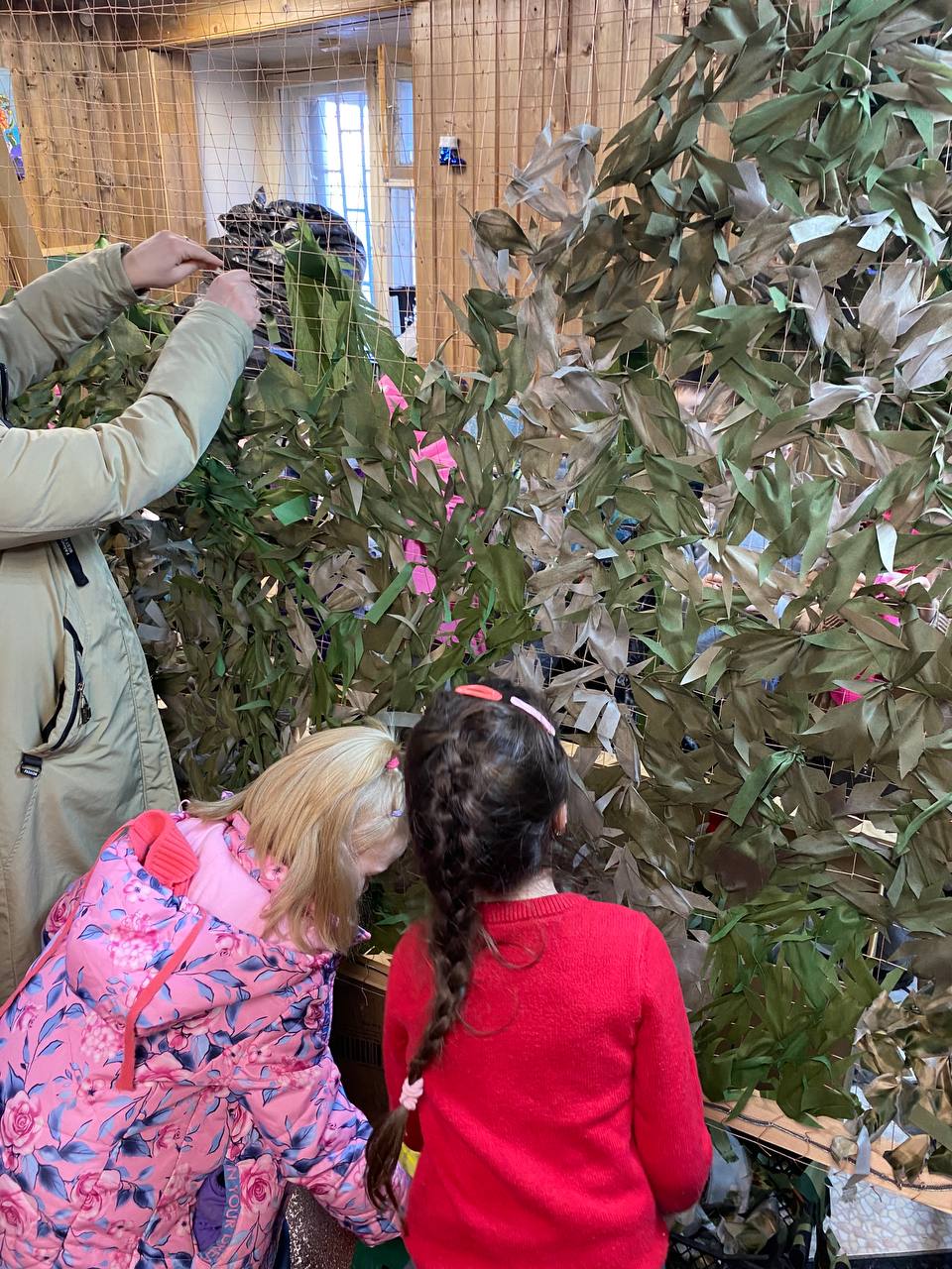 Наша организация объединяющая около 200 волонтеров разных возрастов, от школьников до пенсионеров,также внесла свой вклад. В основном сети плетутся добровольцами из материалов, приобретенных на пожертвования местных жителей.Объемы закупок меняются, поэтому загрузка волонтеров не всегда равномерная. Несмотря на наличие помещений и оборудования для производства крупных партий сетей, нехватка денежных средств на покупку материалов является серьезной для нас проблемой, поскольку работа может приостановиться на несколько недель, что в свою очередь замедляет поставки необходимой продукции на фронт.