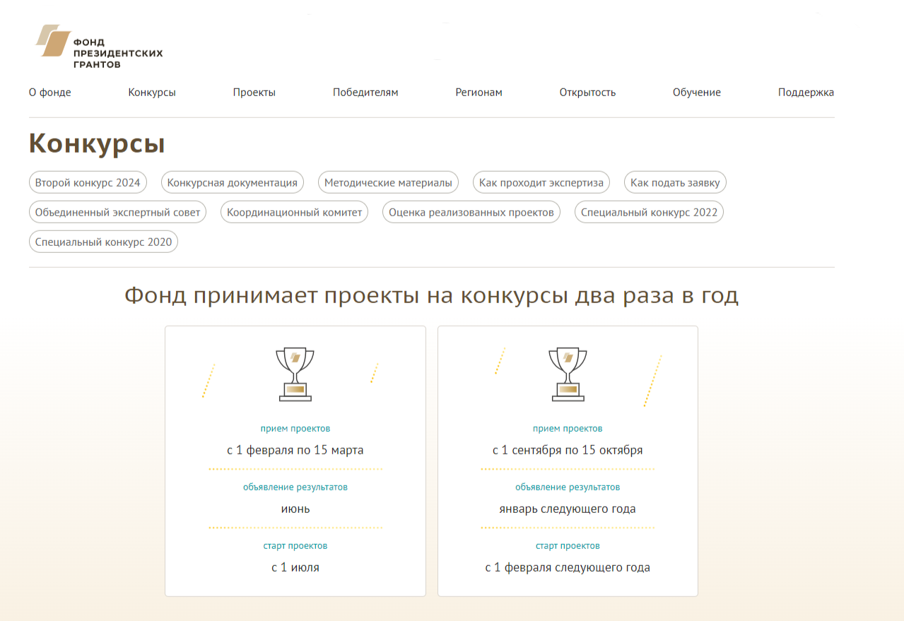 Напоминаем, что Фонд президентских грантов проводит грантовые конкурсы дважды в год. Заявки на второй конкурс будут принимать с 1 сентября по 15 октября 2024 года.