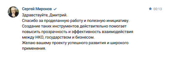 В ответ на обращение разработчика ИСП Дмитрия Плынова Сергей Миронов отметил: