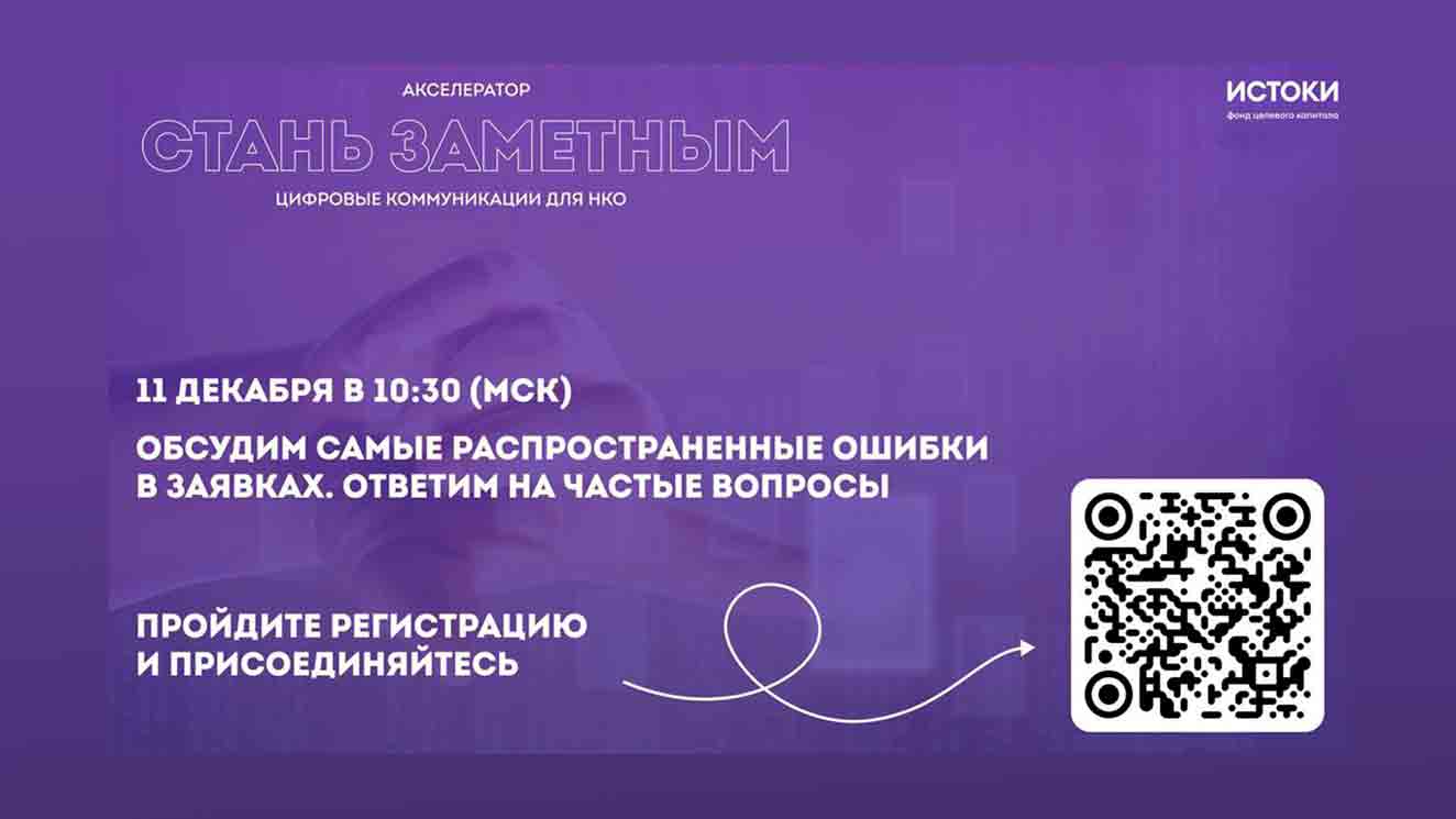 Семинар состоится 11 декабря в 10:30 по московскому времени на платформе «Добро.РФ». Узнайте, как правильно заполнить заявку и увеличить шансы на победу! Зарегистрироваться можно по ссылке.